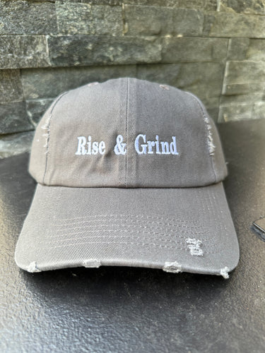Gray “Rise & Grind” Distressed Cap
